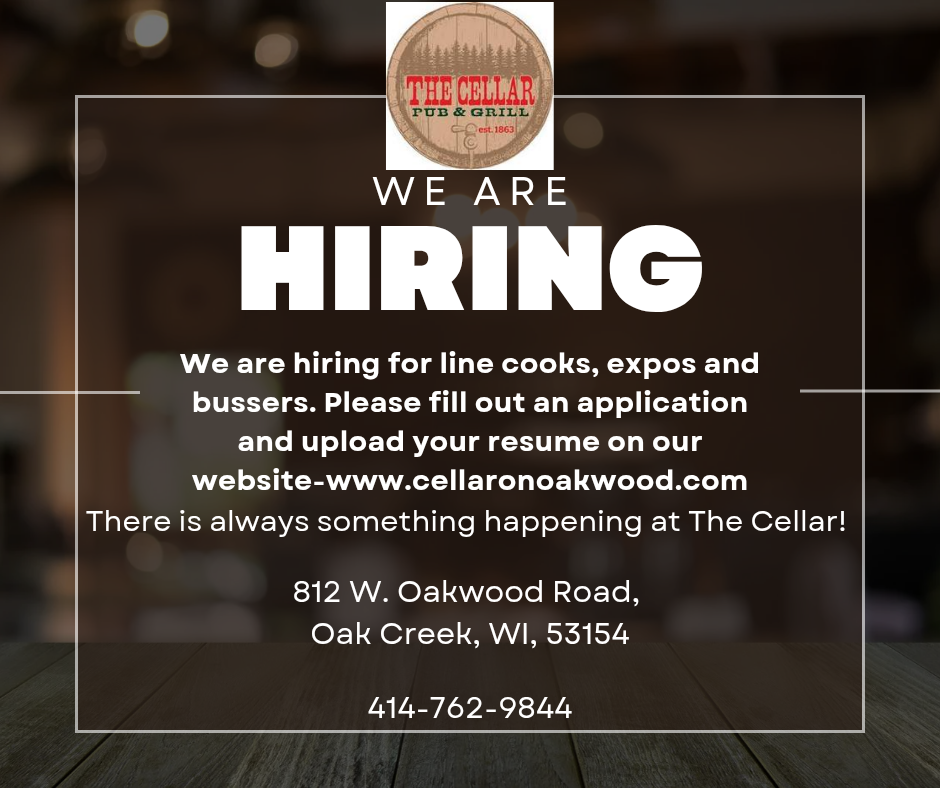 The Cellar Pub & Grill located on Oakwood Road has been a renowned and sociable Oak Creek icon for many, many years. The Cellar’s history dates back to the 1860s and was once known as 'Oakwood Hall'.